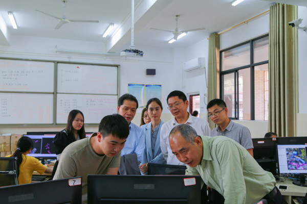座谈会后,韦鹏涯一行到我校食品工程学院和资源与环境学院实地考察调研。(卢子旺 黄敏钊 摄)