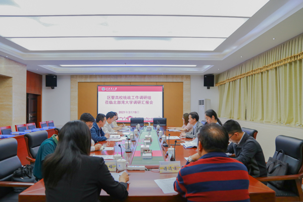 3月19日下午,区管高校统一战线工作调研组组长、右江民族医学院党委统战部部长韦鹏涯一行到我校调研座谈。学校党委常委、副校长陈磊在办公楼327会议室会见了调研专家。