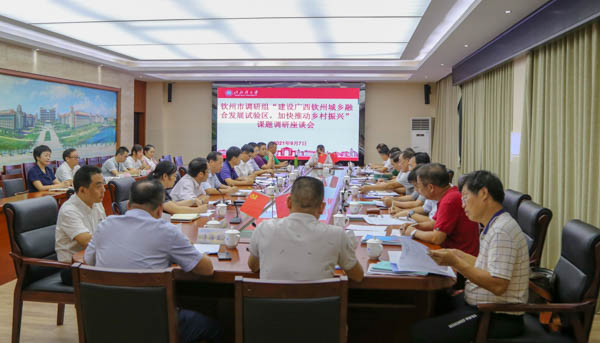9月7日下午,钦州市政协副主席黄定嵩一行就“建设广西钦州城乡融合发展试验区,加快推动乡村振兴”课题到我校进行调研。校党委书记韩峻峰、校党委副书记陈锦山、副校长黄鹄出席会议。市政协原副主席、老领导咨询组成员韦全主持。