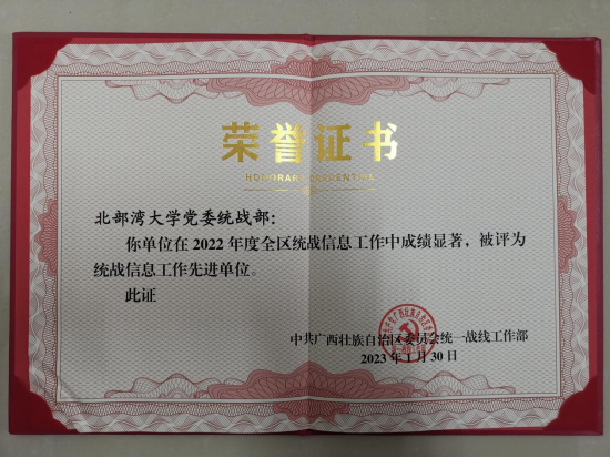 【湾大有喜】我校荣获2022年度全区统战信息工作先进单位