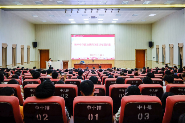4月25日晚上,铸牢中华民族共同体意识专题讲座在12号教学楼204报告厅举行,校党委副书记唐高华作专题讲授。统战部、学工部(处)、团委、马克思主义学院相关负责人及各学院学生代表参加。
